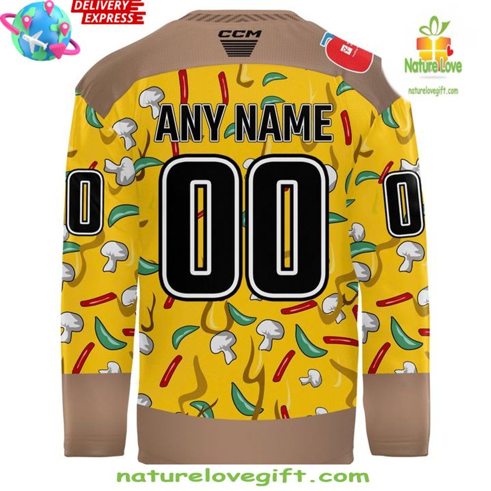 Step onto the ice in style with the Windsor Spitfires 2025 Hockey Jersey Pizza City Edition, where passion for the game meets a dash of culinary flair. This unique jersey captures the spirit of game day excitement, featuring a vibrant design inspired by the local pizza culture that fans adore. With its breathable fabric and comfortable fit, it's perfect for cheering on your favorite team or enjoying a casual night with friends over a slice.Imagine yourself at the arena, surrounded by fellow fans, sporting this eye-catching piece that combines fan gear with a hint of humor. Whether you're at a summer BBQ or a winter game, this jersey is a conversation starter, blending the thrill of hockey with the warmth of community.Don this jersey and become part of the tradition—grab yours today and celebrate your love for both hockey and pizza in a way that’s truly unforgettable!