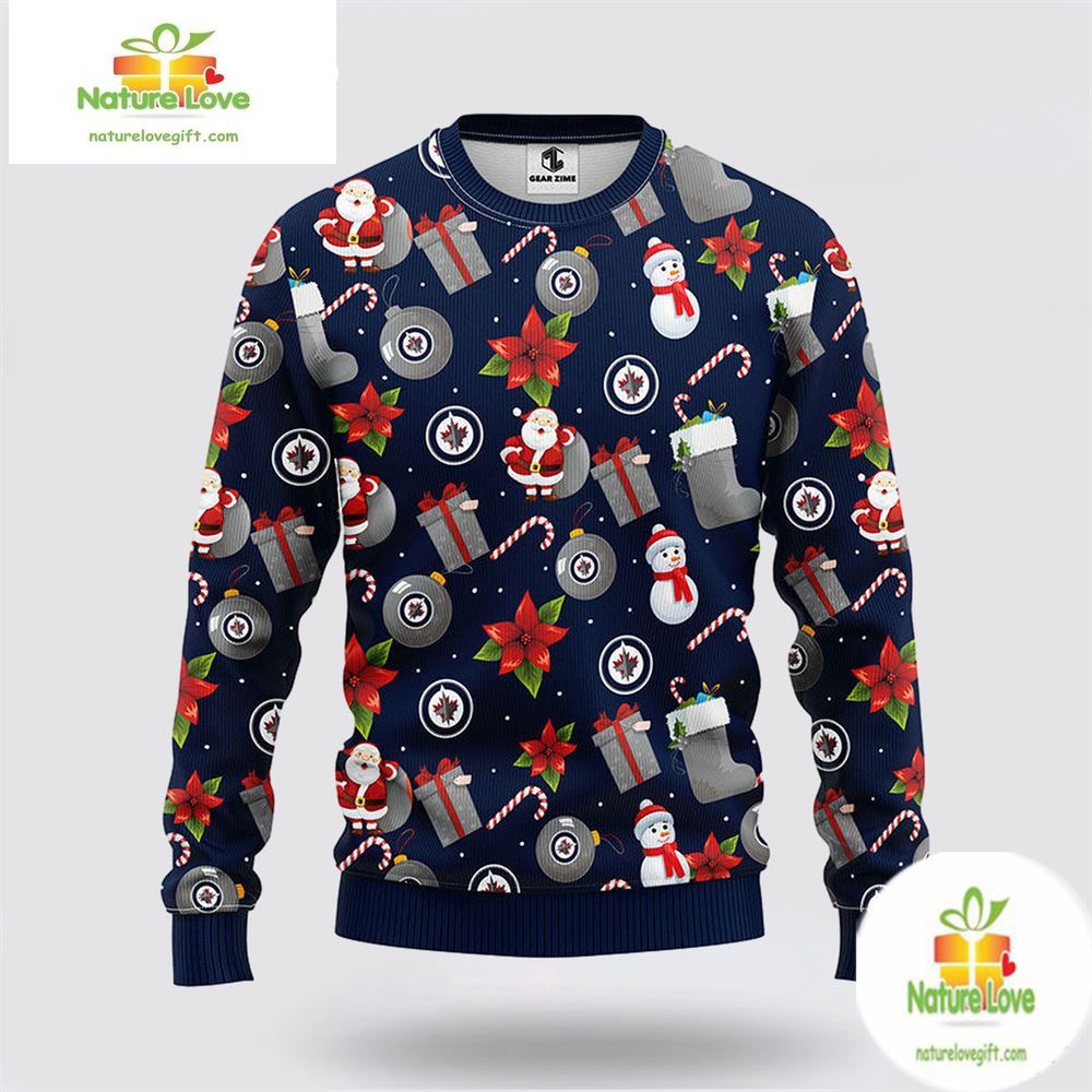 Winnipeg Jets Ugly Christmas Sweater Santa Snowman NHL Holiday