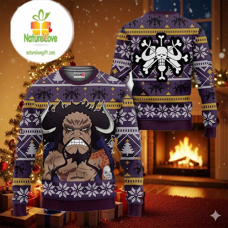Yonko Kaido Anime Xmas Gifts One Piece Ugly Christmas Sweater details: