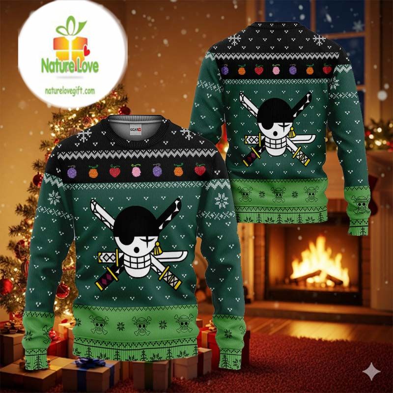 Zoro Anime Xmas Symbol One Piece Ugly Christmas Sweater details: